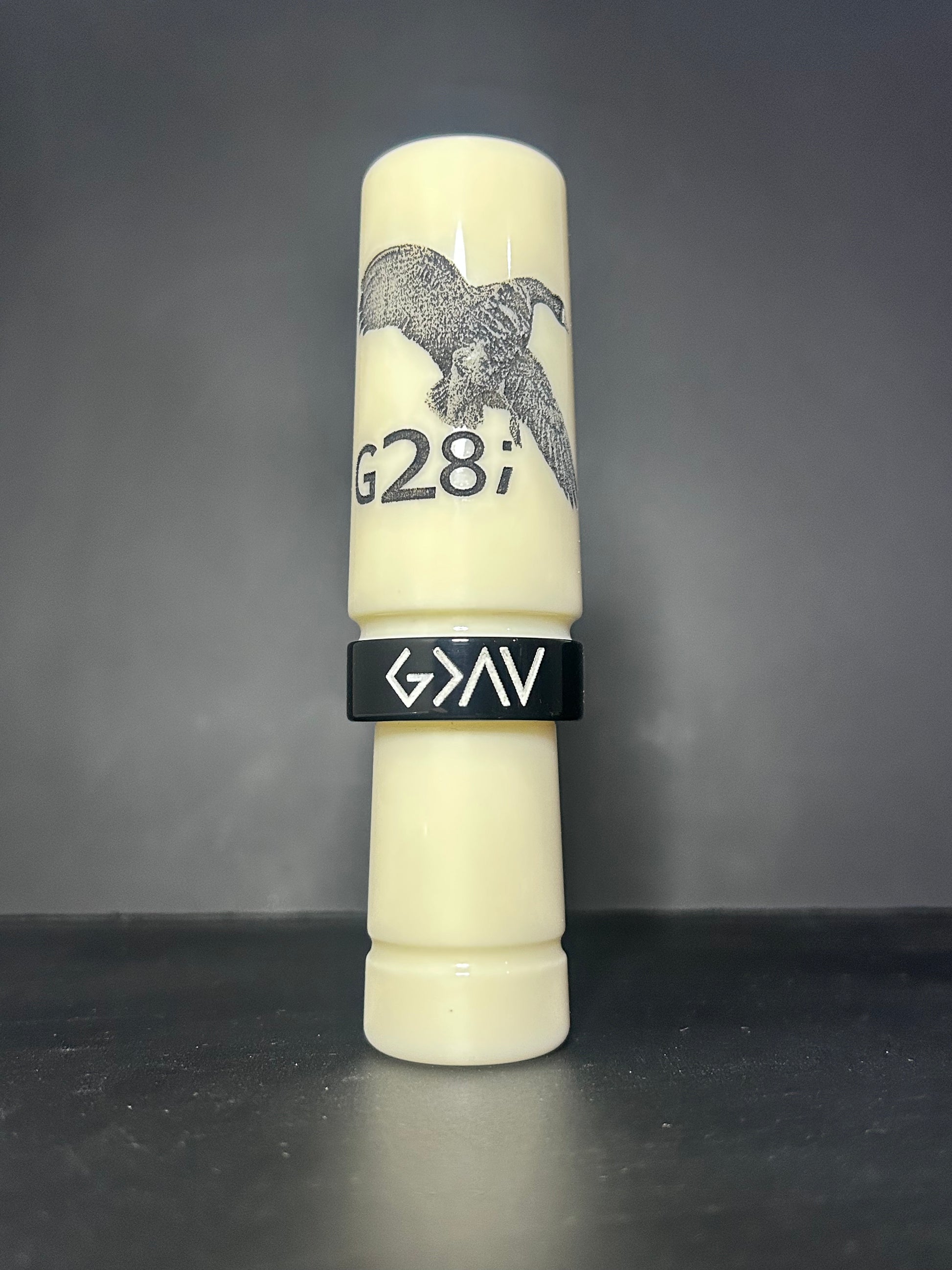 Ivory and black polished speck goose call